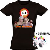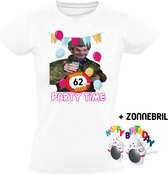 Hoera 62 jaar! Het is feest Dames T-shirt + Happy birthday bril - verjaardag - jarig - 62e verjaardag - oma - wijn - grappig