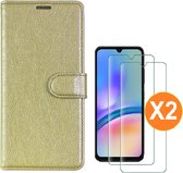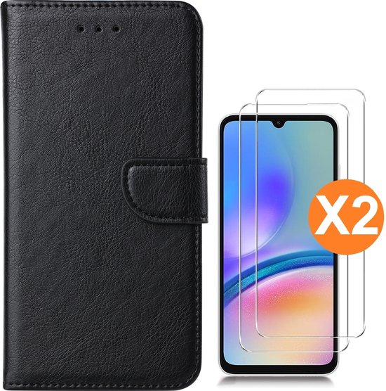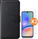 Hoesje geschikt voor Samsung Galaxy A05s bookcase Zwart - Met screenprotector tempered glass Galaxy A05s - 2x