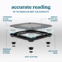 Met zijn afgeronde hoeken, glazen top en gerecyclede basis straalt de Glo™ Body Scale moderne eenvoud uit. Hij past perfect in elke badkamer en is tegelijk een bewuste keuze: ontworpen met oog voor duurzaamheid en comfort.