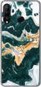 Telefoonhoesje Geschikt voor Huawei P30 hoesje - Marmer print - Aqua - Goud - Siliconen Telefoonhoesje Telefoonhoesje