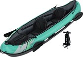 Hydro Force Kayaks Ventura van Bestway. Sportieve, opblaasbare kayak voor 2 personen. Met opblaasbare bodem van zwaar PVC. 2 verstelbare zitjes met opbergvakken, los opbergvak, gecoat nylon cover, bestand tegen zon, olie en zeewater, afneembare vin en reparatie patch. Incl. 2 peddels van 218cm en handpomp. Max. gewicht 200 kg. Afmetingen: 330x94 cm.