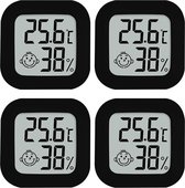 Hygrometer - Weerstation - Luchtvochtigheidsmeter - Thermometer Voor Binnen - Incl. Batterij en Plakstrip - Zwart