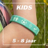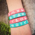 Handig SOS armbandje met aanwijsiconen voor kinderen die tijdens de vakantie of dagje uit lekker hun eigen gang gaan. De naambandjes bevatten twaalf speciale kids reisiconen om aan te wijzen. In navolging op het volwassen backpackers reisbandje kunnen nu ook kinderen de reisiconen aanwijzen als ze opzoek zijn naar bijvoorbeeld een toilet, eten, drinken, fietsen, de speeltuin of het zwembad. Aan de binnenkant van het reisbandje kun je naam en telefoonnummer schrijven, gebruik hiervoor een watervaste pen of stift.