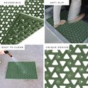 De mat is voorzien van een antislip reliëf, wat zorgt voor optimale veiligheid, zelfs bij regenachtig weer. Uitglijden bij het betreden van het huis is verleden tijd. Daarnaast is de buitenmat zowel functioneel als decoratief dubbelzijdig te gebruiken door een verschillend geometrisch patroon langs beide zijden. Draai deze deurmat eenvoudig om voor een frisse nieuwe look.