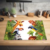 Inductie mat - Jungle dieren - Planten - Kinderen - Olifant - Giraf - Leeuw - Inductie afdekplaat - Keuken