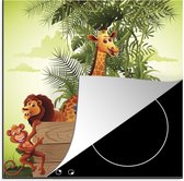 KitchenYeah® Inductie beschermer 78x78 cm - Jungle dieren - Planten - Kinderen - Olifant - Giraf - Leeuw - Kookplaataccessoires - Afdekplaat voor kookplaat - Inductiebeschermer - Inductiemat - Inductieplaat mat
