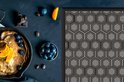 Op de grijze achtergrond staat een intrigerend patroon gemaakt van een heleboel kleine zeshoeken..Productspecificaties