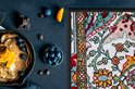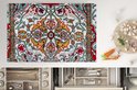 Bovenaanzicht van een kleurrijk Perzisch tapijt met een symmetrisch mandala patroon..Productspecificaties