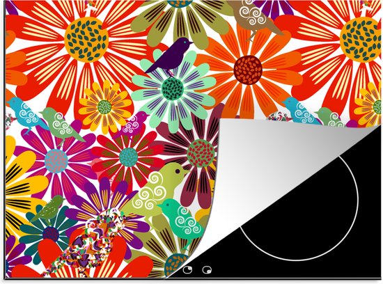KitchenYeah® Inductie beschermer 77x59 cm - Regenboog - Bloemen - Patronen - Hippie - Kookplaataccessoires - Afdekplaat voor kookplaat - Inductiebeschermer - Inductiemat - Inductieplaat mat