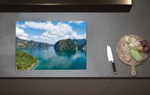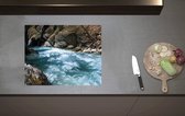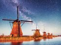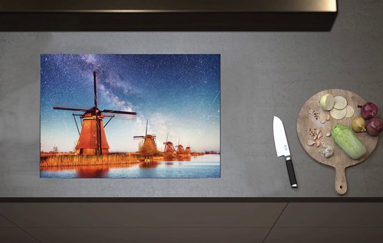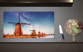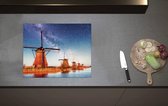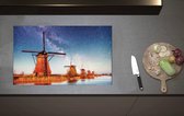 Inductieplaat Beschermer - Rij Windmolens aan het Water onder Sterrenhemel - 70x52 cm - 2 mm Dik - Inductie Beschermer van Vinyl
