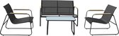 Infinity Goods Tuinset - Loungeset - Tuinmeubelen - Tuinbank - Tuinstoelen - Tuintafel - Glazen blad - 4 Persoons - Zwart/Antraciet
