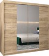 InspireMe - Kledingkast met 2 schuifdeuren, Modern-stijl, Kledingkast met planken (BxHxD): 200x200x62 - TORM I 200 Sonoma Eik + Wit Mat met 4 lades
