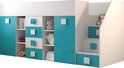 Stapelbed LEDO 3 - Antresola - 90X200 cm - naar de Kinderkamer - Wit + Turkoois (met Matras)
