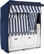 Intergrill strandstoel Oostzee 1-zitter - massief hout en riet – inclusief kussens en bekleding - blauw wit gestreepte stof