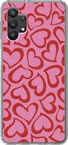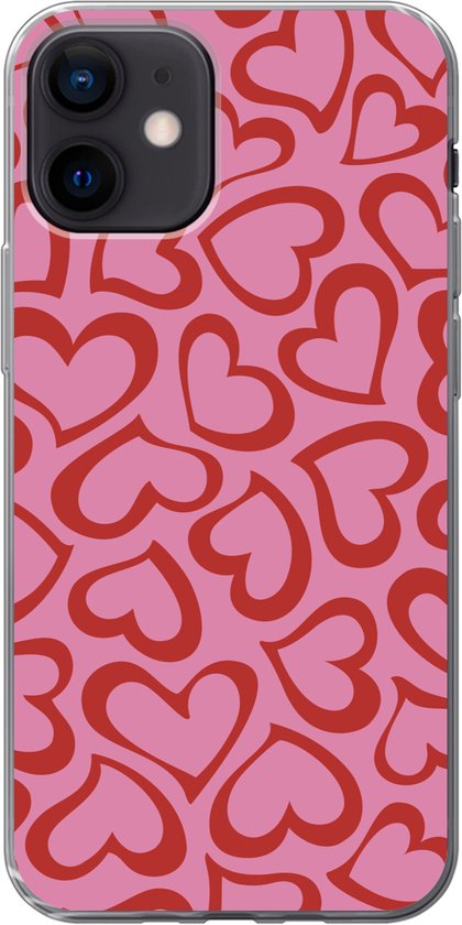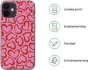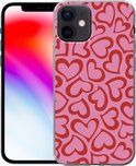 Telefoonhoesje Geschikt voor iPhone 12 hoesje - Een illustratie van behang met rode hartjes - Siliconen Telefoonhoesje Telefoonhoesje