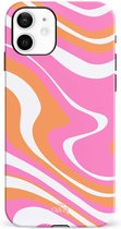 xoxo Wildhearts Chasing Sunsets - Double Layer - Hoesje geschikt voor iPhone 12 case - Siliconen hoesje met golvenprint - Golven - Hardcover - Beschermhoes - Optimale bescherming - Beige - Oranje - Roze