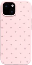 Hoesje Geschikt voor iPhone 12 - Roze - Casemania Stevige Siliconen Back Cover met Hartjes Print