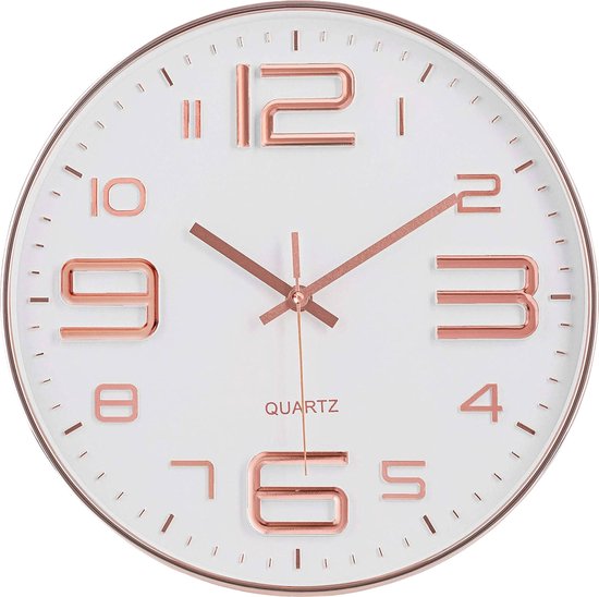 Hey daar! Ben jij ook altijd druk in de weer? Tijd is goud waard, en met de IvoQ wandklok heb je goud letterlijk aan je muur hangen! Perfect voor de dynamische sfeer van een jong, levendig huishouden. Met zijn strakke witte wijzerplaat en chique koperkleurige cijfers is deze klok niet alleen super handig om de tijd in de gaten te houden, maar ook een trendy blikvanger in je interieur. Gemaakt met de betrouwbaarheid van Quartz, houdt deze klok je secondes nauwkeurig bij, zonder de stress.