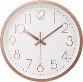IvoQ Stijlvolle Wandklok - Elegante Witte Quartz Klok met Koperkleurige Accenten - Ideaal voor Elk Modern Interieur