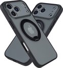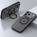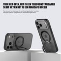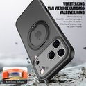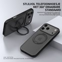 IYUPP Hoesje geschikt voor iPhone 17 Pro Hoesje - Geschikt voor MagSafe - 360 graden Draaibare Telefoonstandaard - Kickstand Magnetisch Back Cover - Zwart