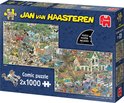 Jan van Haasteren puzzels zijn puzzels met veel kleur en details. Jan van Haasteren tekent al decennia lang humoristische platen die je steeds weer verrassen en laten lachen. De echte fans kennen de specifieke kenmerken van Jan van Haasteren en zoeken in elke puzzel direct naar de haaienvin, Sinterklaas, de handjes, het kunstgebit en Jan’s zelfportret. Jumbo heeft tientallen Jan van Haasteren puzzels in de collectie van 54 tot maar liefst 5.000 puzzelstukjes.