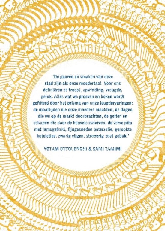 'De geuren en smaken van deze stad zijn als onze moedertaal. Voor ons definiëren ze troost, opwinding, vreugde, geluk. Alles wat we proeven en koken wordt gefilterd door het prisma van onze jeugdervaringen: de maaltijden die onze moeders maakten, de dagen die we op de markt doorbrachten, de geiten en schapen die door de heuvels zwierven, de verse pita met lamsgehakt, fijngesneden peterselie, gerookte koteletjes, zwarte vijgen, stroperig zoet gebak.'