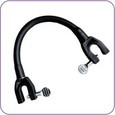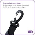 Aan het uiteinde van deze schoenendrager zitten handige clips die je aan je schoenen kunt bevestigen. Door het handvat kan de band comfortabel