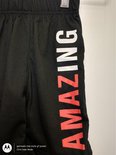 Jongens korte broek Amazing in de kleur zwart met letteropdruk Amazing in de kleur wit en rood. De bovenzijde van de broek heeft een elastische tailleband. De short is gemaakt van 100% polyester. De korte broek heeft geen zakken. Rekbare en zachte stof om te dragen. Lengte 35 cm/Breedte 23-28 cm. Rekbare wijdte. Wasbaar op 30 graden.