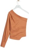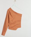 Casual chic & feminine! De JOSH V Eevie top in de kleur Bronze heeft een linnen uitstraling en een lichte structuur in de stof. De top is een one shoulder model en heeft een aansluitende pasvorm. Een mooi detail is de JOSH V emaille knoop op de manchet. De JOSH V Eevie top is verkrijgbaar in de kleuren Bronze en Whisper White.
