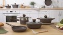 Just Perfecto 12 Delige Pannenset Inductie - Marron Beige Pannenset Met Deksel Voor Gas en Inductie - PFAS vrij - Koudgrepen