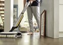 Fris gereinigde vloeren zonder dat je vooraf hoeft te stofzuigen: de FC 7 Accu-vloerreiniger verwijdert alle soorten dagelijks droog en nat vuil in één handeling.