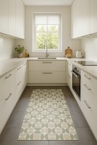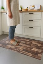 Je kunt het keukenkleed gemakkelijk herpositioneren. De keukenloper is bestemd voor de keuken, maar je kunt hem ook gebruiken in de bijkeuken, badkamer of slaapkamer. De keuken loper is gemaakt van vinyl. Dit materiaal is licht en heeft nog twee voordelen: het is voorzien van antislip en daarnaast is het hittebestendig (brandcertificaat B1). Het materiaal is ook waterafstotend, dus je kunt het gewoon schoonmaken met een nat doekje.