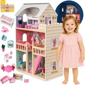 - Groot houten poppenhuis met 4 verdiepingen en 8 kamers.