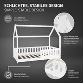 Het moderne kinderbed Marli (160x80 cm, wit) met valbeveiliging, lattenbodem en dak is ideaal voor meisjes en jongens van 3 tot 10 jaar. Als gezellige slaap- en speelplek verfraait het huisbed elke kinderkamer. Want de woninglook met open dak biedt veel mogelijkheden! Ontwerp het bed met baldakijndecoratie, als hol of avontuurlijk speelbed. Zeker voor jonge kinderen biedt een poortje meer bescherming en veiligheid. Het houten bed is de juiste keuze voor langdurig gebruik dankzij het stevige en onderhoudsvriendelijke grenenhout.