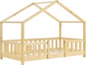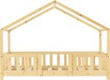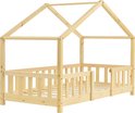Dit stevige grenen huisbed met uitvalbeveiliging en bedbodem is een favoriet van kinderen.