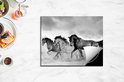 Chefcare Inductie Beschermer Drie Bruine Paarden - Zwart Wit - 65x52 cm - Afdekplaat Inductie - Kookplaat Beschermer - Inductie Mat