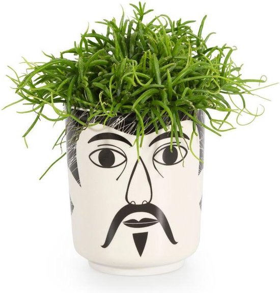 Voorraadpot of bloempot met gezicht ontworpen voor Kitsch Kitchen door de Zweedse ontwerpster Ingela P. Arrhenius.