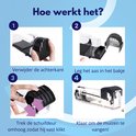 Het instellen van de val is eenvoudig. Druk de zijkanten in om de achterkant te openen en vul het aasbakje. Plaats de achterkant terug en trek de hendel naar achteren om de valdeur te openen. Nu is de val klaar voor gebruik! Dankzij het diervriendelijke ontwerp is de val veilig voor huisdieren en kinderen.