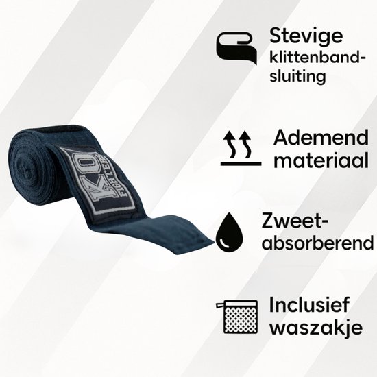 De bandages kunnen gebruikt worden in alle (kick) bokshandschoenen, MMA-handschoenen en zakhandschoenen.