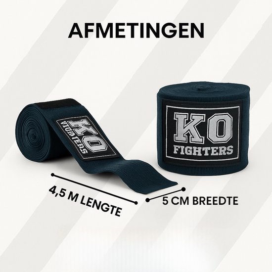 KO Fighters - Bandage Boksen - Kickboks Bandage - Zwart - 4.5M