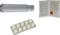 Wat er wordt meegeleverd als je dit product bestelt. - 10 reinigingstabletten en één filtercartridge