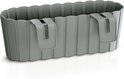 Kunststof rechthoekige balkon plantenbak/bloembak met haken grijs 38 cm.