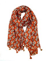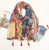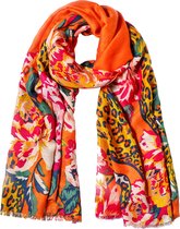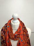Lange dames sjaal Kalila gebloemd motief oranje blauw geel donkerblauw groen rood turquoise