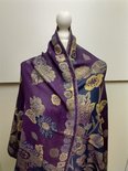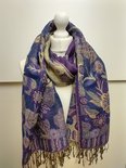 Lange dames sjaal Yvon-gebloemd motief-paars roze geel blauw wit zwart goud