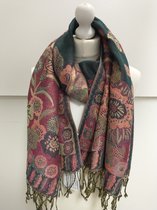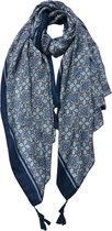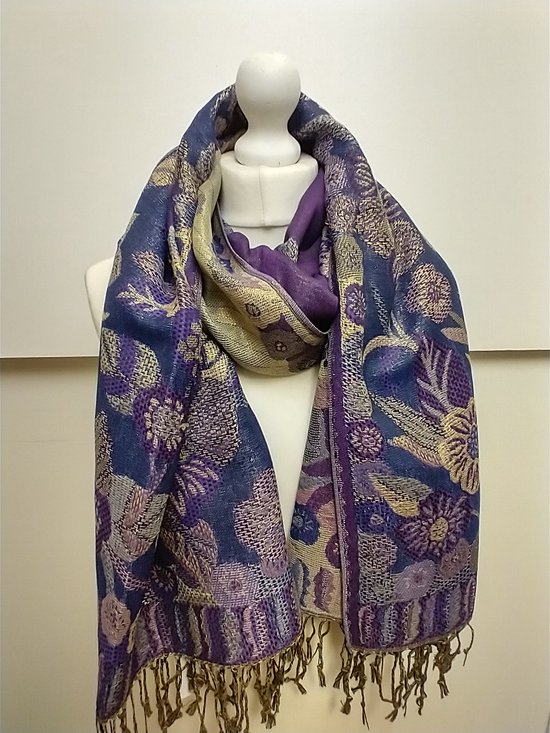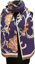 Lange dames sjaal Yvon in gebloemd motief in de kleuren paars, roze, geel, blauw, wit, zwart en goud. De sjaal heeft aan beide zijden franjes. Langwerpig model. De sjaal is gemaakt van 100% viscose. U kunt de sjaal wassen op 30 graden. De sjaal kan gecombineerd worden met een blazer, jas, vest, trui, sweater, blouse, longsleeve, jurk of tuniek. De lengte van de sjaal is 179 cm, de breedte van de sjaal is 70 cm.