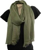 Lange glanzende dunne dames sjaal Alma-effen olijf groen-omslagdoek-stola
