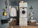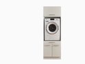 De Laundry kast is vervaardigd uit hoogwaardig gemelamineerd houtmateriaal. Om het aansluiten van de wasmachine zo gemakkelijk mogelijk te maken is de achterkant bij de inbouwnis opengelaten. Doordat de kast voorzien is van een voetstuk zal het apparaat niet naar voren schuiven tijden het centrifugeren.