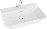 LAVITA® Opzetwastafel KARAWELA Rechthoekig Keramische Wastafel voor Badkamer en Gastentoilet - 500x400x145 mm - Wit Hoogglans - Wasbak met dunne rand - Keramik Waskom opbouw met kraangat en zonder overloop