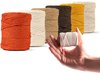 Als u op zoek bent naar een hoogwaardig en duurzaam macramé touw, dan bent u bij ons aan het juiste adres! Ons macramé koord komt rechtstreeks uit België en bestaat uit ongeveer 80% katoen en 20% polyester. Het touwkoord is afkomstig van oude kledingstukken en stoffen, wat de duurzaamheid bevordert. Het productieproces gebruikt aanzienlijk minder water dan bij conventioneel koord. Wij bieden een breed scala aan kleuren, van pastel tot gedurfde tinten. Ons touw is ook verkrijgbaar in verschillende diktes, kijk dus zeker even verder naar onze andere producten ook! Zo kan u bij ons altijd het juiste touw voor uw project vinden. Ons macramé koord is perfect voor zowel macramé projecten als doe-het-zelf projecten zoals armbanden, wandhangers, plantenhangers, tassen en nog veel meer. Met ons touw kunt u uw creativiteit de vrije loop laten en unieke kunstwerken creëren. Ons 3strengs, dubbel getwist, touw is uiterst sterk en stevig, waardoor uw projecten lang meegaan. Het pluist en rafelt niet; is gemakkelijk te hanteren en knoopt zeer goed, waardoor het ook voor beginners toegankelijk is. Het veelzijdige materiaal is perfect voor verschillende projecten. Als u op zoek bent naar een touw dat duurzaam geproduceerd werd en perfect is voor macramé- en doe-het-zelfprojecten, dan is ons macramékoord de ideale keuze. Ons ruime assortiment kleuren en diktes zorgt ervoor dat u altijd het juiste artikel voor uw project vindt. Bestel nu en laat je creativiteit de vrije loop!