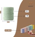 Ledent macramé touw (1mm, 10 x 65M), dubbel getwist - 100% geregenereerd katoenkoord - Dun macramé touw in pastelkleuren, setje van tien kleine rolletjes om mee te knutselen